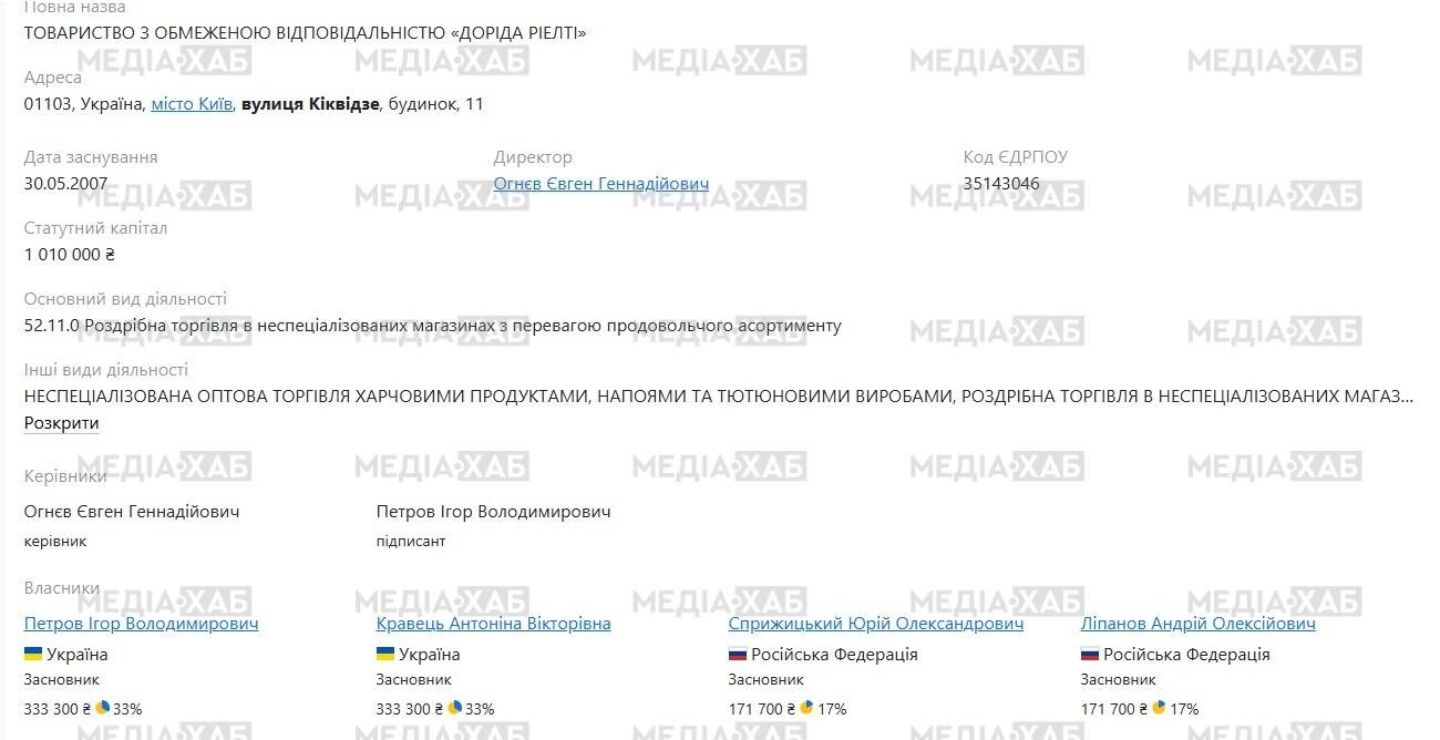 Але паспорт — це ще не все. Точніше — далеко не все, що пов’язує Андрія Матюху з Російською Федерацією. Одним з давніх напрямків критики Матюхи став його зв’язок з громадянами РФ через компанію ТОВ «Доріда Ріелті». Станом на серпень 2025 року його партнерами там числилися росіяни Юрій Сприжицький і Андрій Ліпанов. Фірма продовжує працювати, а вихід Матюхи з числа бенефіціарів експерти називають «питанням більше формальним, ніж фактичним». Слід, мабуть, підкреслити — ТОВ «Доріда Ріелті» зареєстрована в Україні і працює там же. Незважаючи на офіційну присутність серед власників двох громадян РФ. Йдеться про 2025 рік, якщо хтось не зрозумів.